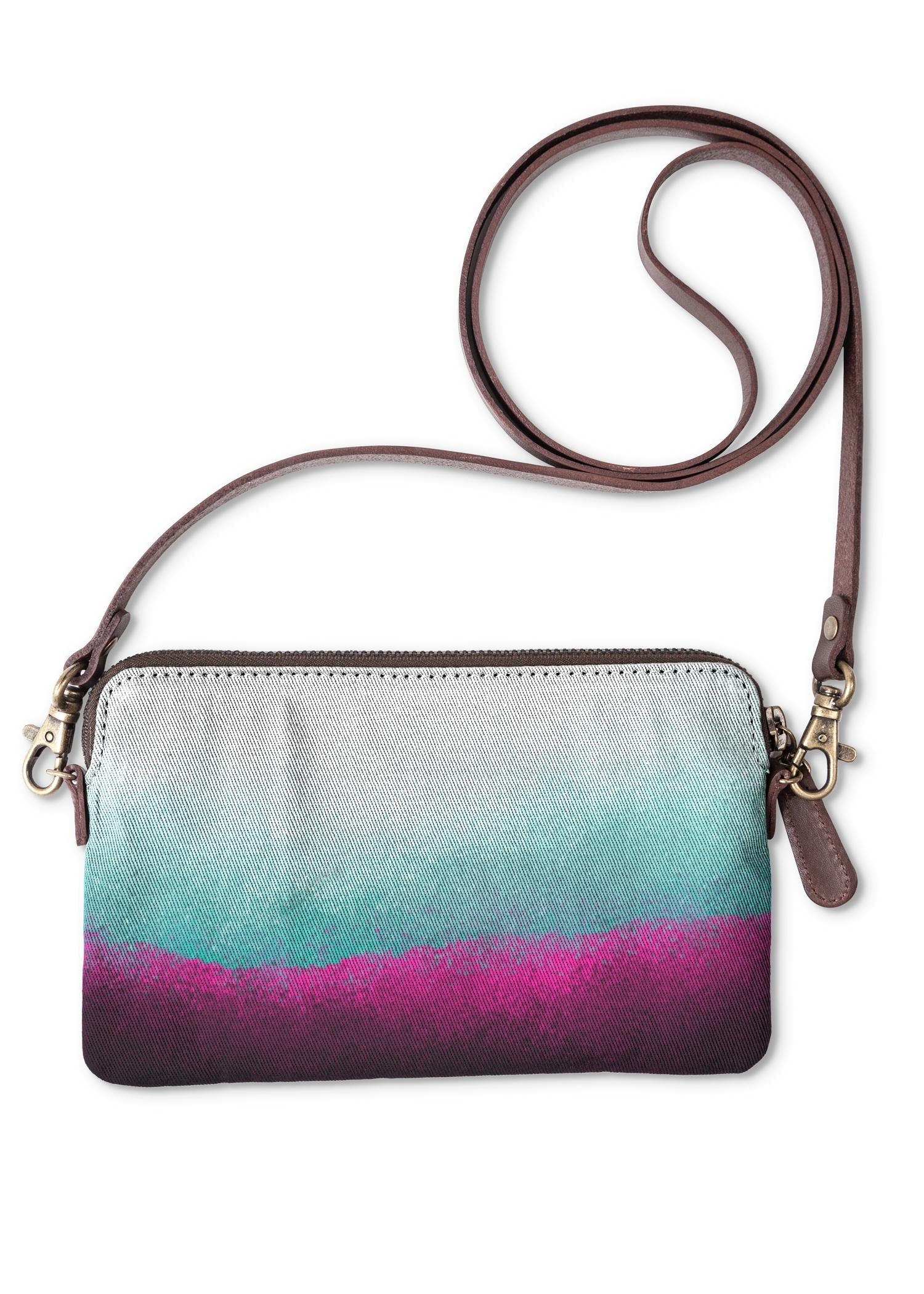 Carry it as a clutch or wear it as a purse - this art-infused canvas bag with removable leather strap is a standout accessory for any occasion.