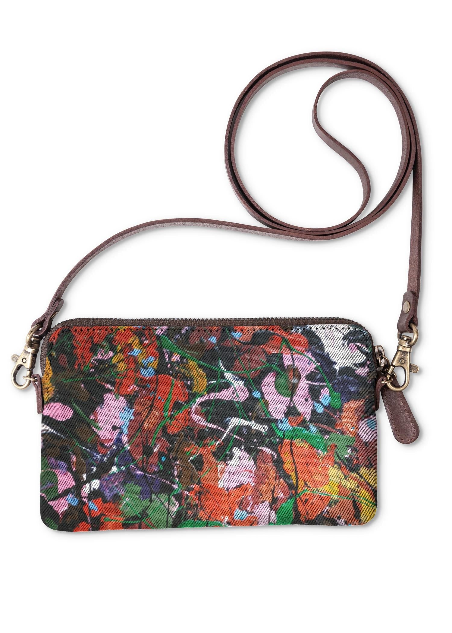Carry it as a clutch or wear it as a purse - this art-infused canvas bag with removable leather strap is a standout accessory for any occasion.