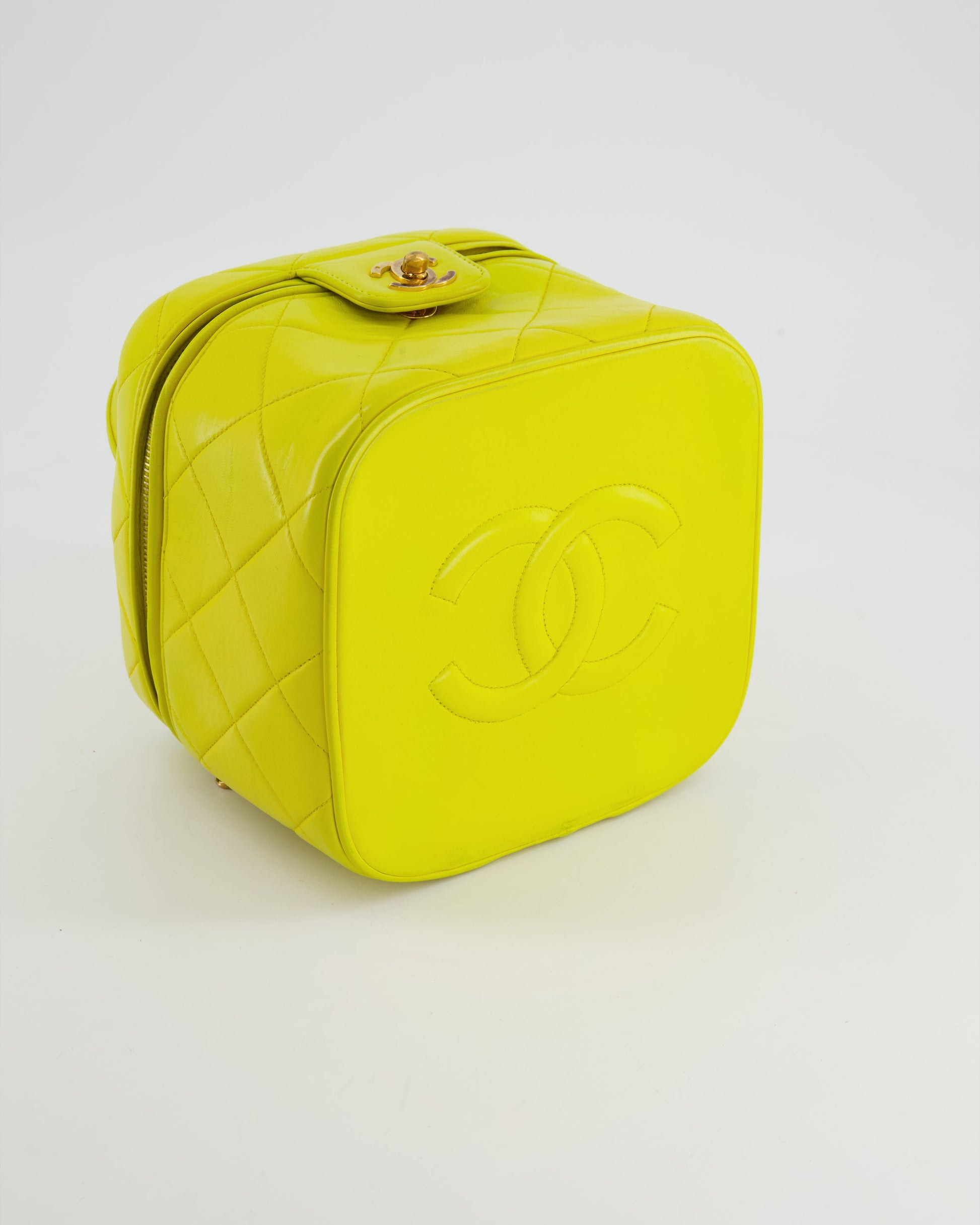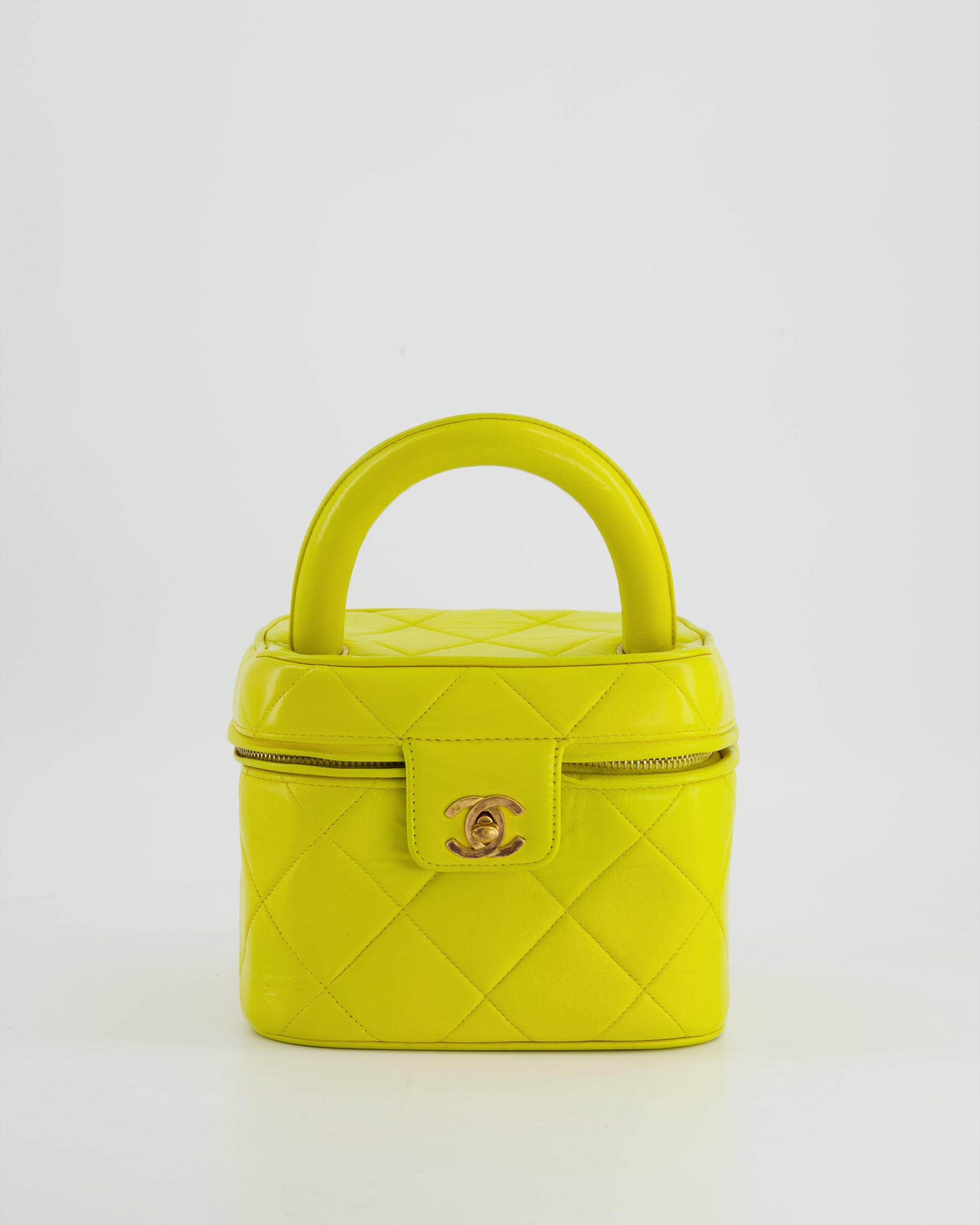 *ORIGINAL 90'S VINTAGE* Chanel Yellow Vintage Top Handle Vanity Bag in Lambskin Leather with 24k Gold Hardware